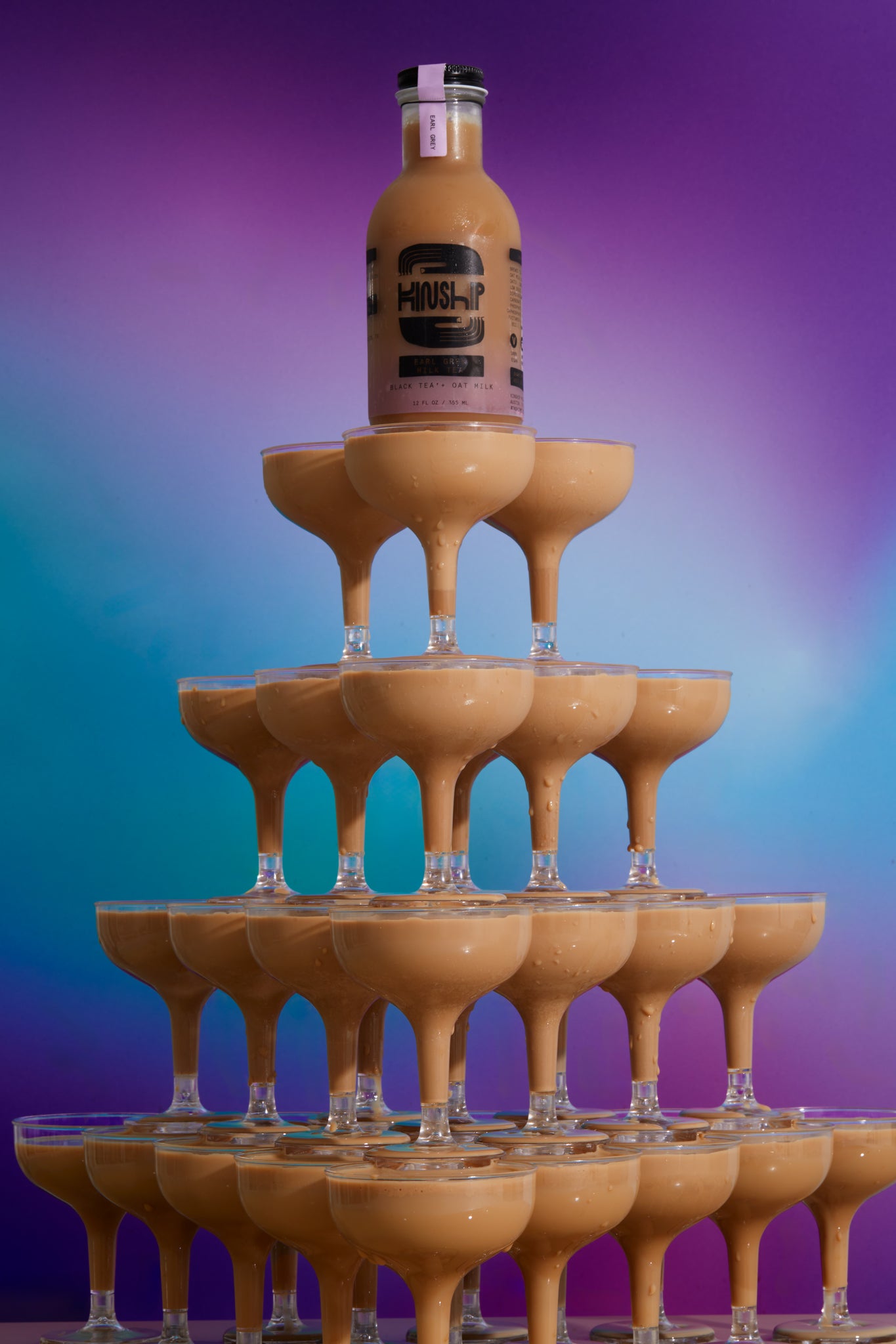 Brewed tea (water, black tea), oat milk (oat base [water, oats], contains 2% or less of: low erucic acid rapeseed oil, dipotassium phosphate, calcium carbonate, tricalcium phosphate, sea salt, dicalcium phosphate, riboflavin, vitamin A Acetate, vitamin D2, vitamin B12.), turbinado cane sugar.